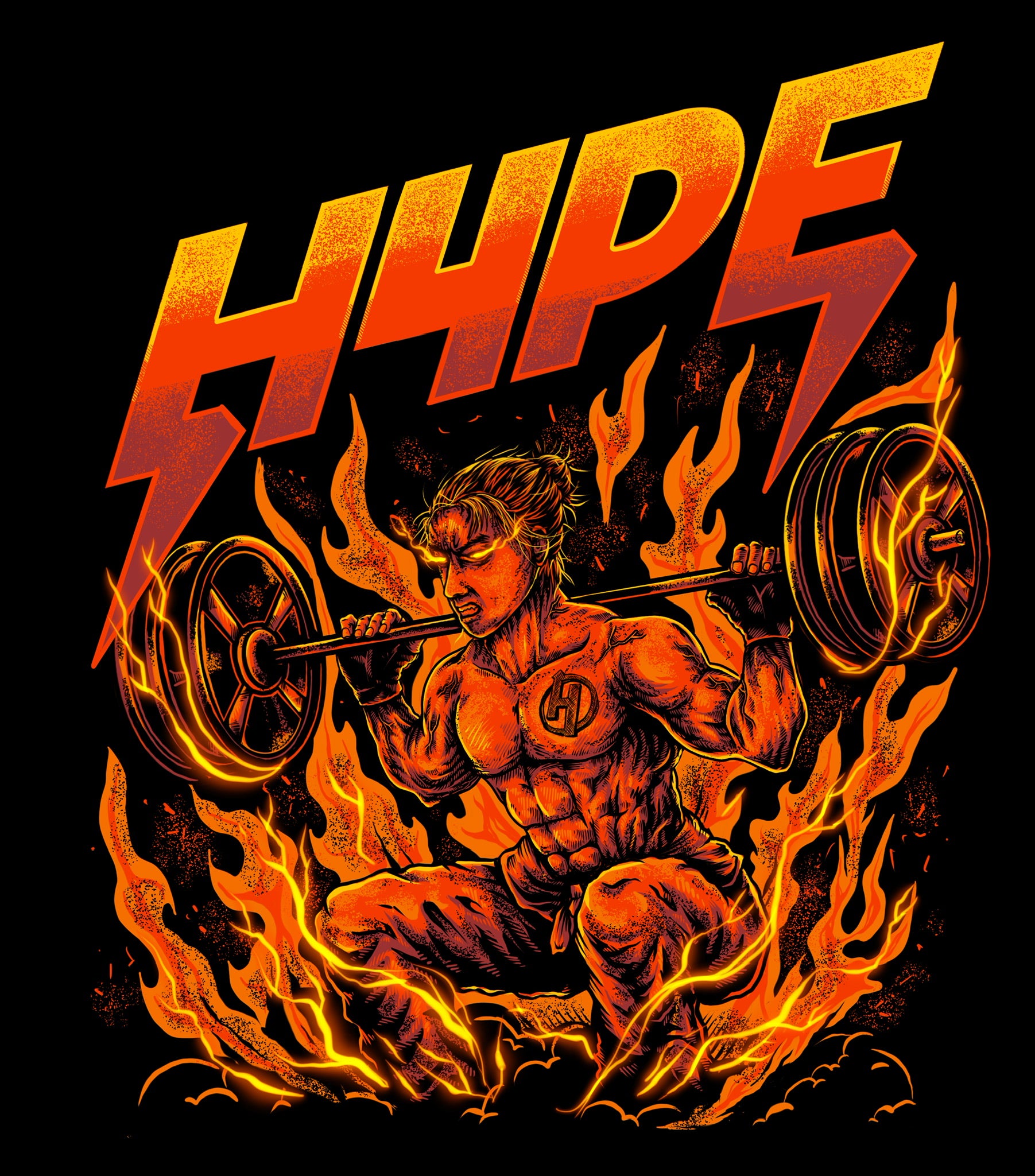 A mix of style and functionality with fleece jackets in black and beige, cozy hype socks, and the standout T-shirt featuring a squat engulfed in flames.