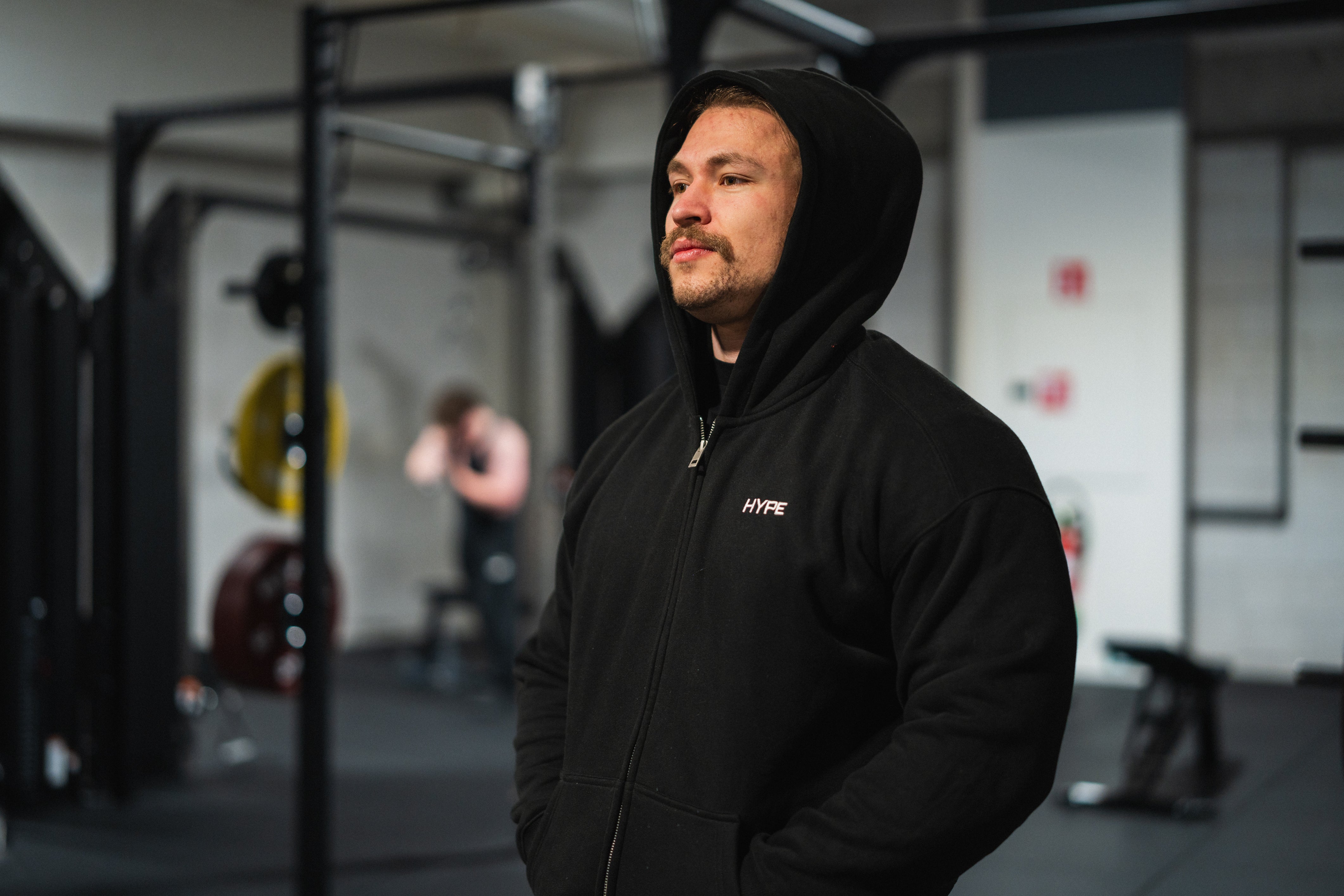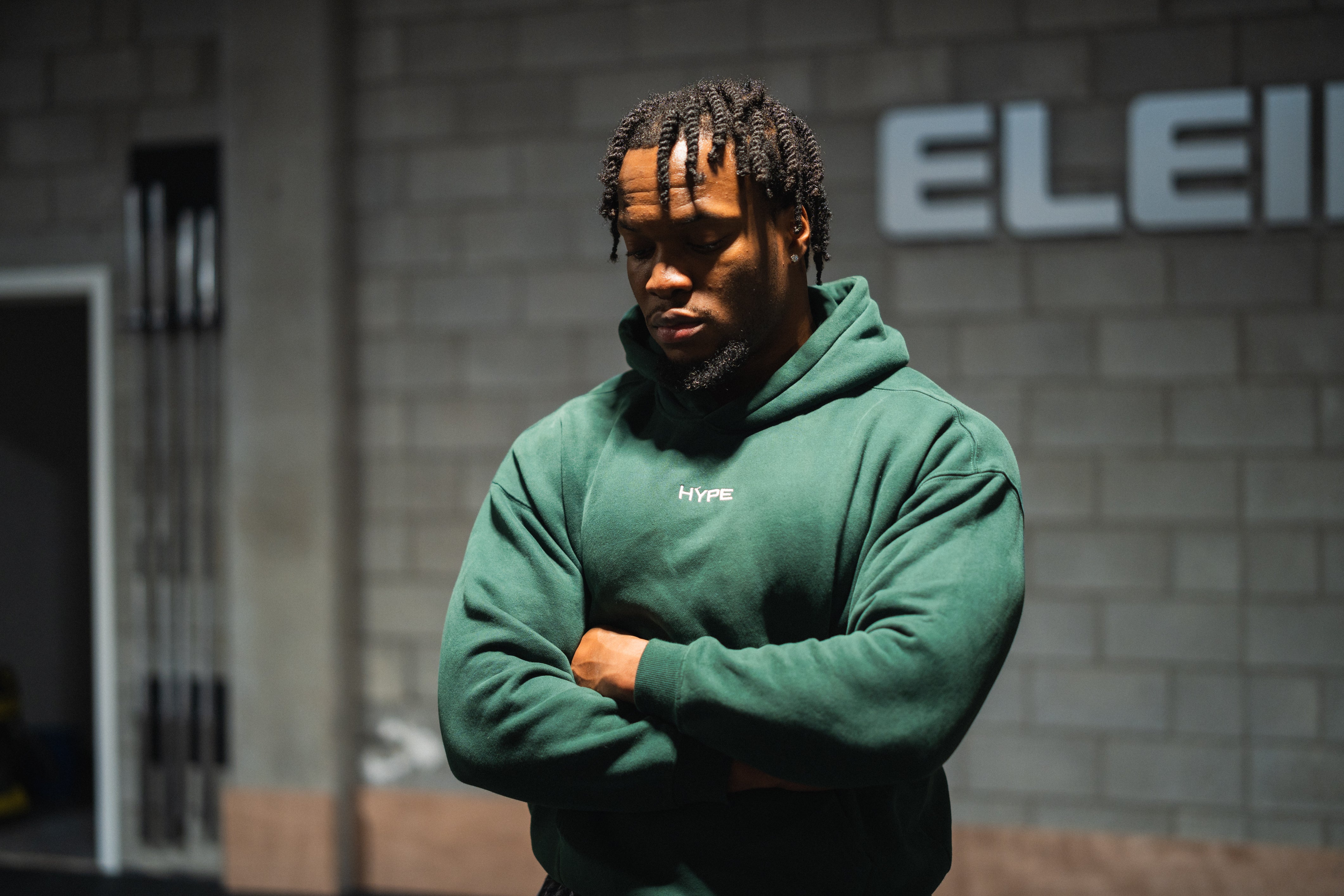 Expanding the collection with colored hoodies and pump covers in navy, green, and grey. Designed for both warmth and style, these pieces became a gym staple.